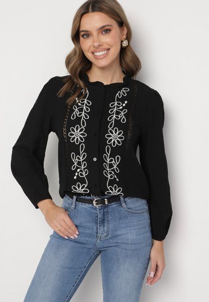 Czarna Koszula z Bawełną i Wiskozą Ozdobiona Haftem Nalaviris