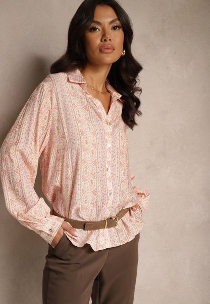 Różowa Koszula z Wiskozy Zdobiona Drobnym Kwiatowym Wzorem Aredina