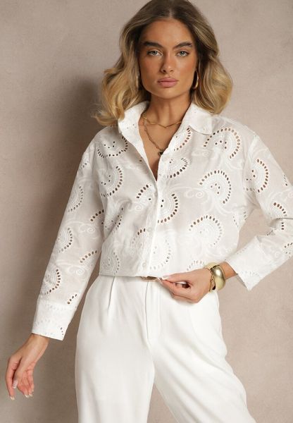 Biała Ażurowa Koszula z Bawełny o Klasycznym Kroju Ivelvania