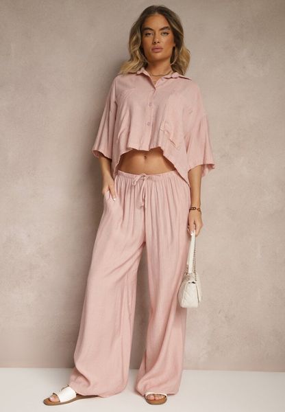 Ciemnoróżowy Komplet z Wiskozy o Kroju Oversize Koszula i Spodnie Dovaraella
