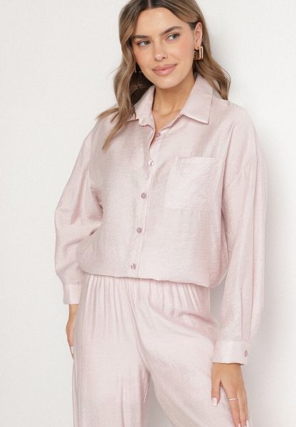 Jasnoróżowa Klasyczna Koszula o Kroju Oversize z Kieszonką Liorea