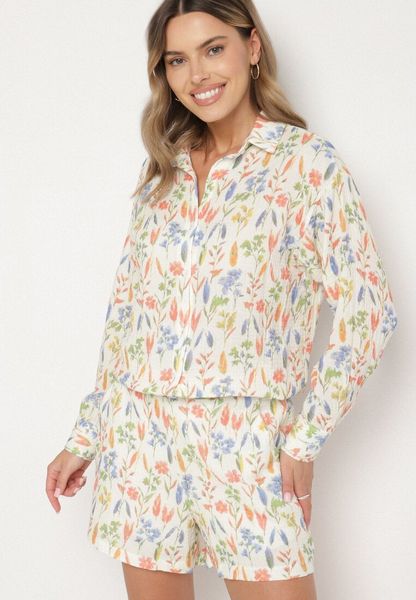 Beżowa Koszula z Bawełny z Kwiatowym Motywem Nilarienne
