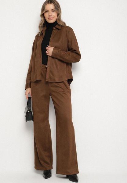 Brązowy Komplet Koszula i Szerokie Spodnie z Dodatkowym Paskiem z Klamrą Eclenne