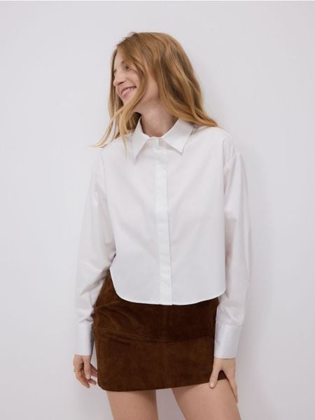 Koszula o krótszym fasonie, wykonana z gładkiej tkaniny.
