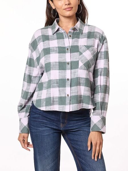 – czysta bawełna- kołnierz: kent- zapięcie: listwa guzikowa- zakończenie rękawów: mankiet na guzik- kieszenie: na piersi- krój: cropped- dolny brzeg: zaokrąglony- wzór: kratka