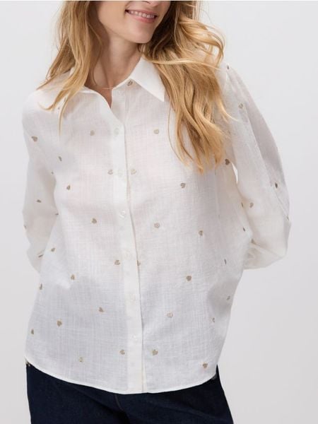 Koszula o prostym kroju, wykonana z bawełnianej tkaniny z domieszką lnu.