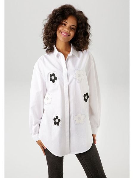 – czysta bawełna- kołnierz: kent- zapięcie: listwa guzikowa- zakończenie rękawów: guzik- dolny brzeg: zaokrąglony- detale: błyszczące kamyczki- krój: oversized- wzór: kwiatowy