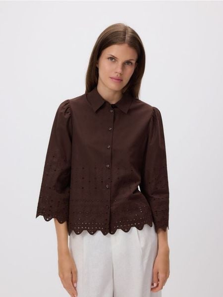 Koszula z ażurowym wzorem – ciemnobrązowy