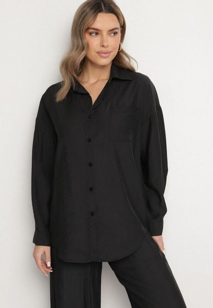 Czarna Klasyczna Koszula o Kroju Oversize z Kieszonką Liorea