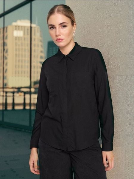 Sinsay – Wiskozowa koszula z kieszeniami – czarny –