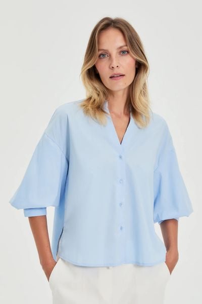 Koszula z bufiastymi rękawami błękitna