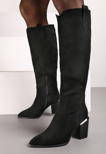 Czarne Kozaki Vices na Słupku Ozdobione Metaliczną Wstawką Moriane