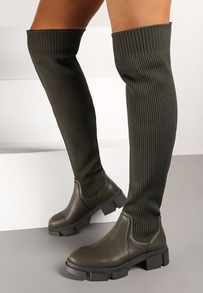 Zielone Kozaki na Platformie ze Skarpetową Cholewką Ellandra