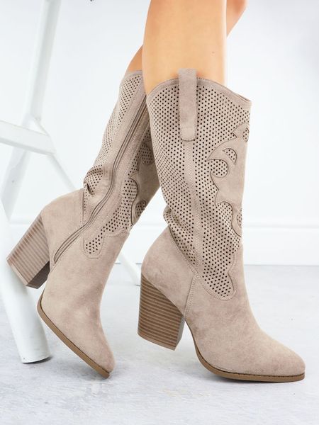 Kozaki damskie ażurowe zamszowe beżowe S.Barski HY51-606