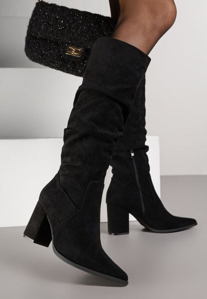 Czarne Marszczone Kozaki z Imitacji Zamszu na Słupku Rasinessa
