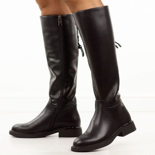 Czarne skórzane kozaki damskie na Vinceza 66822