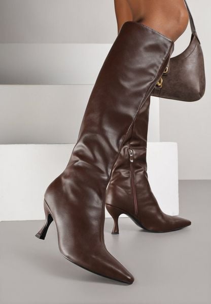 Ciemnobrązowe Marszczone Kozaki Vices na Obcasie Typu Kaczuszka Miomadia