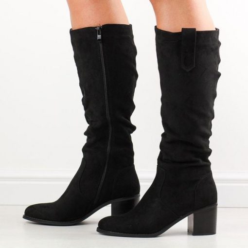 Czarne zamszowe kozaki damskie na obcasie M.Daszyński 2337-1