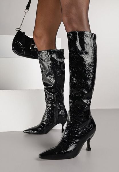 Czarne Kozaki na Szpilce Vices z Marszczoną Cholewką z Efektem Spękań Tidvire