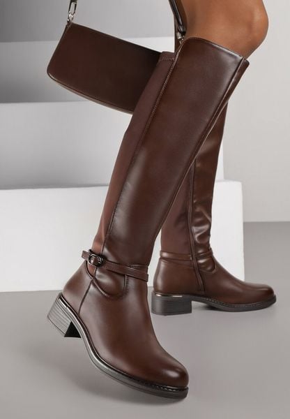 Brązowe Kozaki Typu Oficerki z Klamrą na Pasku Esillea