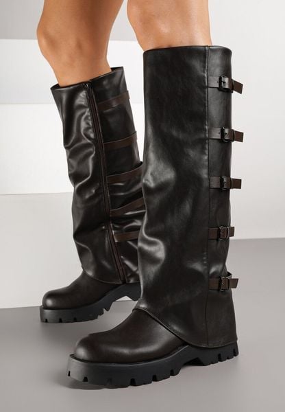 Brązowe Kozaki Bikery z Ozdobnymi Aplikacjami Latevesa