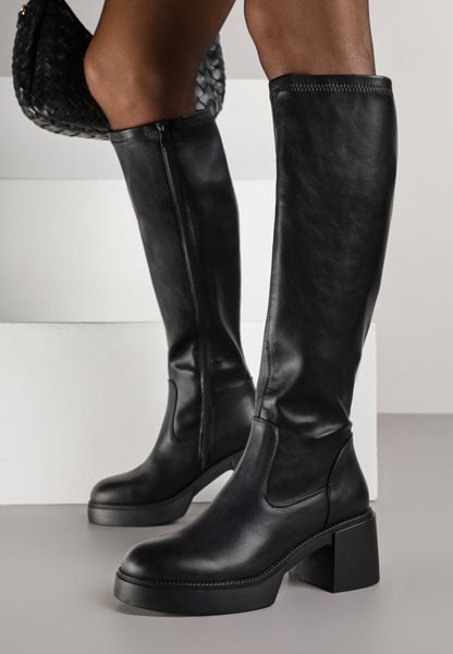 Czarne Dopasowane Kozaki Przed Kolano na Niskim Słupku i Grubszej Podeszwie Steccata