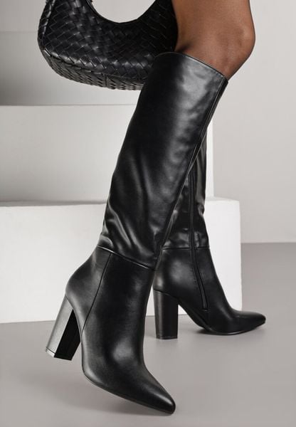 Czarne Eleganckie Kozaki Vices na Słupku ze Szpiczastym Noskiem Lanirrea
