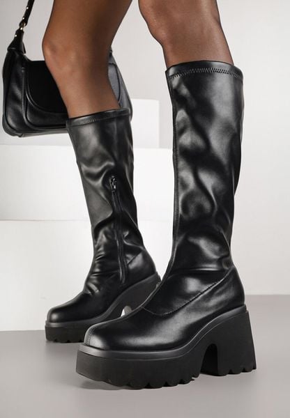 Czarne Kozaki Vices na Słupku z Przylegającą Cholewką w Stylu Cyber Falesela