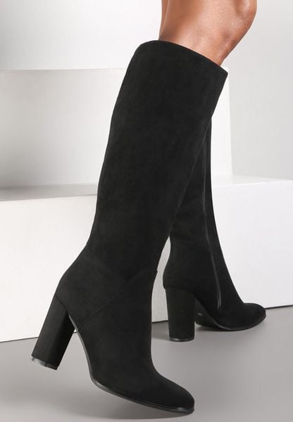 Kozaki Hrarpi na słupkowym obcasie, z cholewką sięgającą przed kolano. Zasuwane na zamek błyskawiczny z wewnętrznej strony. Smukły, zaokrąglony nosek. Wykonane z gładkiego ekozamszu, lekko ocieplane kocem obuwniczym. Minimalistyczny design sprawia, że wpasują się w wiele stylizacji. Koniecznie dopasuj je z wiązanym płaszczem lub kurtką z imitacji skóry!