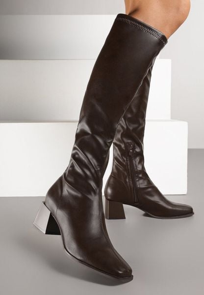 Brązowe Kozaki na Geometrycznym Słupku z Kwadratowym Noskiem Brikalona