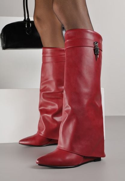Czerwone Kozaki na Koturnie z Modnie Wywiniętą Cholewką z Klamrą Erisela
