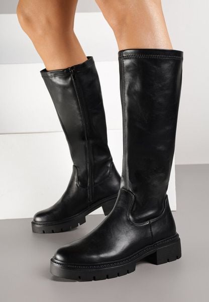 Czarne Klasyczne Kozaki z Gładką Cholewką Apillia