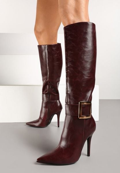 Bordowe Kozaki na Szpilce Ozdobione Klamrą Innadora