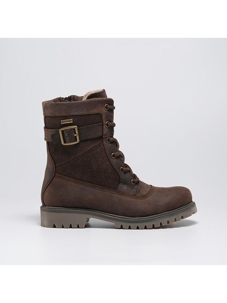 – skóra welurowa i licowa- zapięcie: sznurowanie z bocznym suwakiem- noski: zaokrąglone- noski i zapiętki: wzmocnione- wyściełany brzeg cholewki- wyściółka: futerko odprowadzające wilgoć- wkładka: CushyStep EVA- detale: ozdobna klamra- podeszwa: profilowana