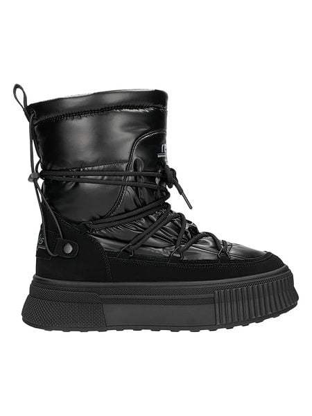 – zapięcie: system szybkiego zapinania- praktyczna szlufka ułatwiająca zakładanie- noski: zaokrąglone- noski i zapiętki: wzmocnione- wyściółka: ogrzewająca wełna- dookoła gumowanie- podeszwa: antypoślizgowa
