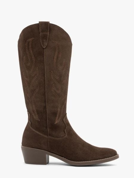 Damskie kozaki typu kowbojki z linii RKO to wyrazisty model w głębokim odcieniu ciemnego brązu. Wykonane z miękkiej skóry welurowej, łączą klasyczną sylwetkę z detalami inspirowanymi stylem western. Charakterystyczne przeszycia na cholewce podkreślają ich unikatowy fason, a nosek w szpic optycznie wydłuża nogę. Obcas 4,5 cm zapewnia komfort na co dzień, a zamek sięgający do […]