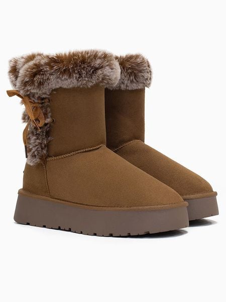 – zapięcie: sznurowanie- noski: zaokrąglone- noski i zapiętki: wzmocnione- detale: obszycie ze sztucznego futerka- forma obcasa: platforma- podeszwa: antypoślizgowa
