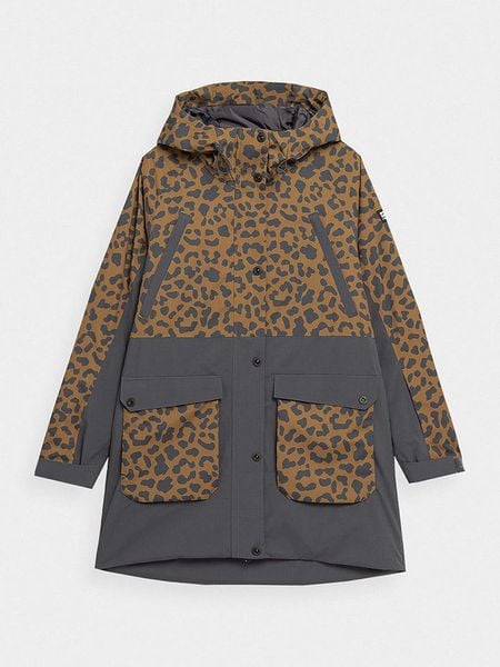 – wodoszczelność: do 15.000 mm słupa wody – oddychalność – wiatroodporność- szczeliny wentylacyjne: zapinane zamkiem błyskawicznym- kaptur: tak – zapięcie: zamek błyskawiczny – kieszeń na skipass: tak – kieszenie piersiowe: 2- naszyte kieszenie: 2- krój: luźny- wzór: panterka