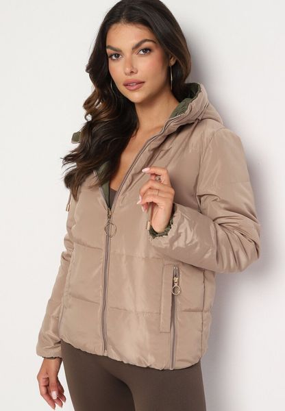 Beżowa Dwustronna Pikowana Kurtka z Kapturem Ściągana przy Rękawach Nevelas