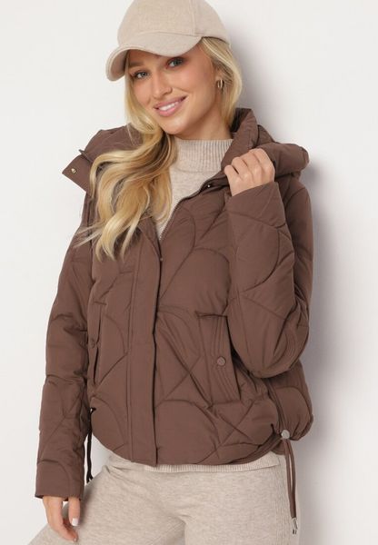Brązowa Pikowana Kurtka o Pudełkowym Kroju z Kapturem i Ściągaczami Selizola