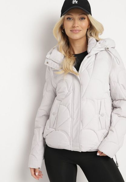 Biała Pikowana Kurtka o Pudełkowym Kroju z Kapturem i Ściągaczami Selizola