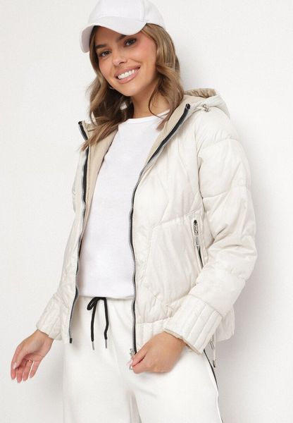 Biała Dwustronna Kurtka Pikowana z Kieszeniami i Kapturem Eralethra