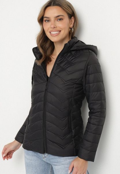 Czarna Pikowana Kurtka z Kapturem z Możliwością Odpięcia Natisme