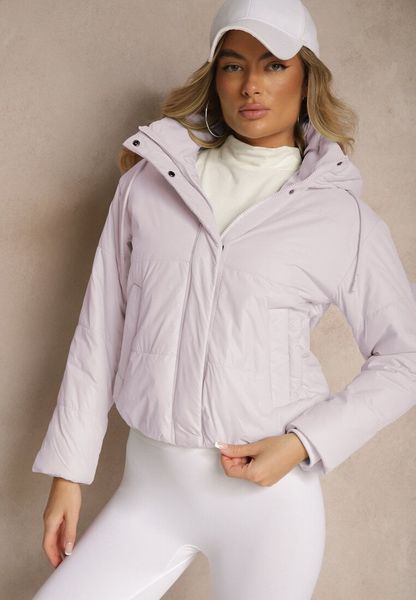 Jasnofioletowa Kurtka z Szerokim Pikowaniem i Nieodpinanym Kapturem Ninilira