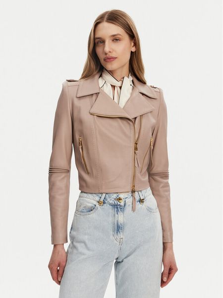 Elisabetta Franchi Kurtka skórzana GD-47Z-51E2-V1200 Beżowy Regular Fit