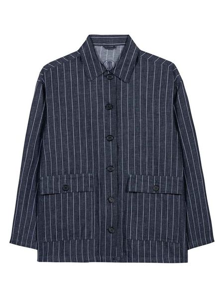 – kołnierz: kent- zapięcie: listwa guzikowa- kieszenie z patką: 2- krój: prosty- wzór: paski