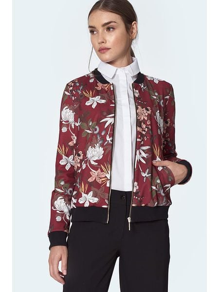 – kołnierz: college- zapięcie: suwak- ściągacz: kołnierz, zakończenia rękawów, dolny brzeg- kieszenie: wpuszczane- krój: prosty- wzór: kwiatowy