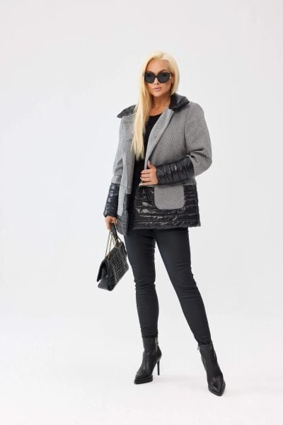 Elegancka damska kurtka Viktoria w jodełkę z pikowanymi wstawkami – lekko ocieplona PLUS SIZE XXL OVERSIZE JESIEŃ