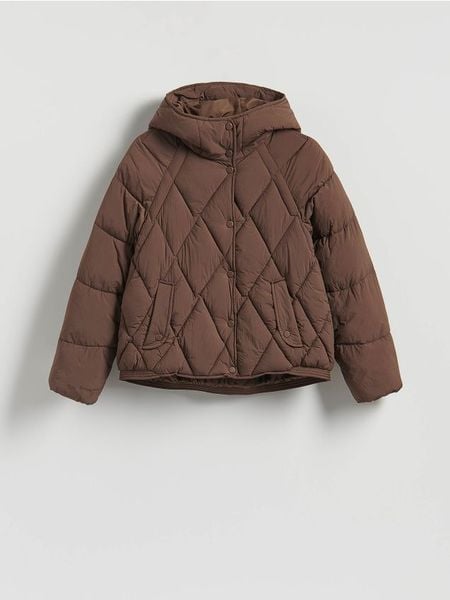 Pikowana kurtka z kapturem – ciemnobrązowy