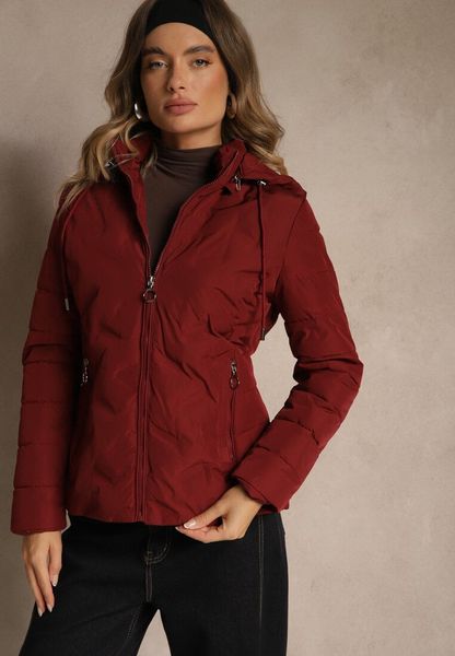 Bordowa Pikowana Kurtka Przejściowa z Kapturem z Możliwością Odpięcia Olantta